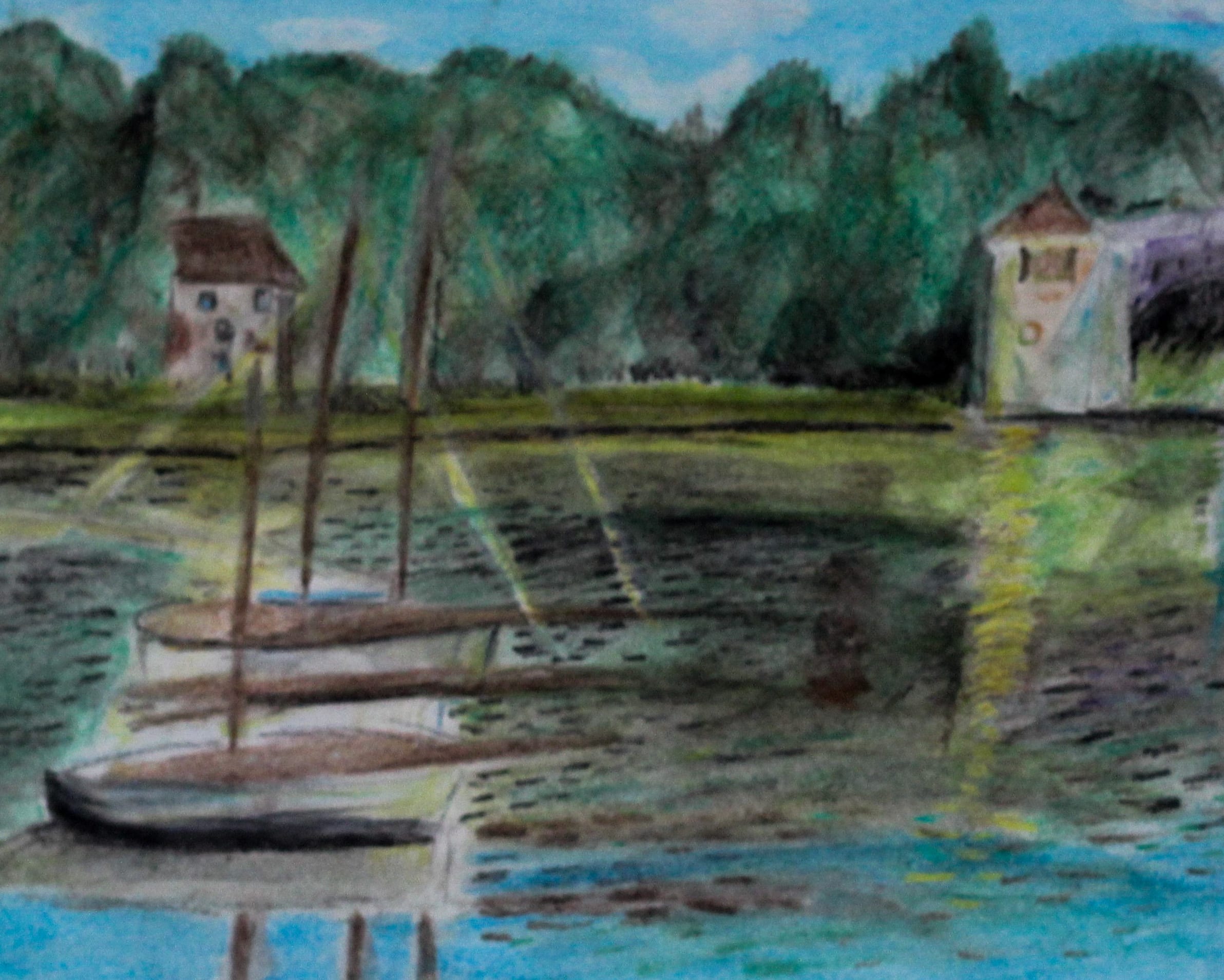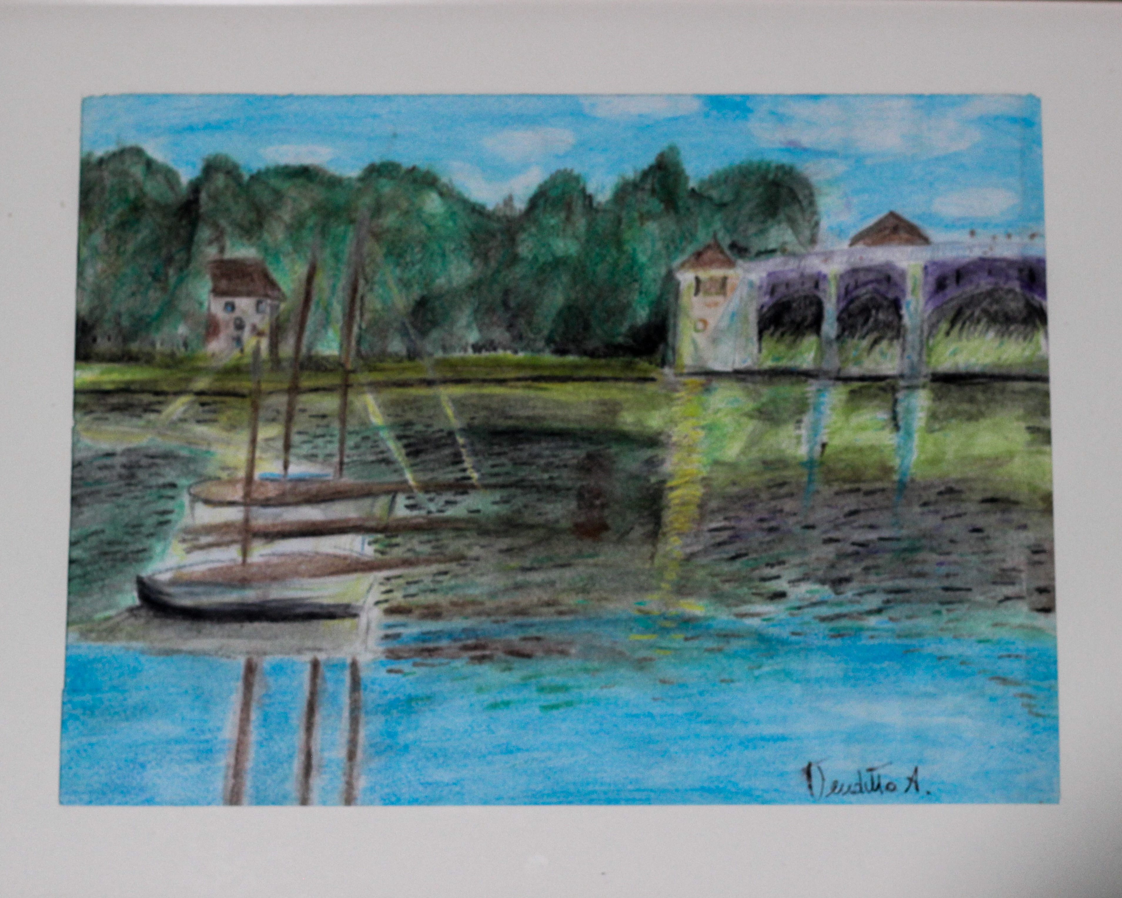 At that time I had no other tools at my disposal, so I used pastels dipped in water to recreate the light and colours typical of Impressionist works. The astonished teacher left her signature, praise with an academic kiss, on the back of the paper.