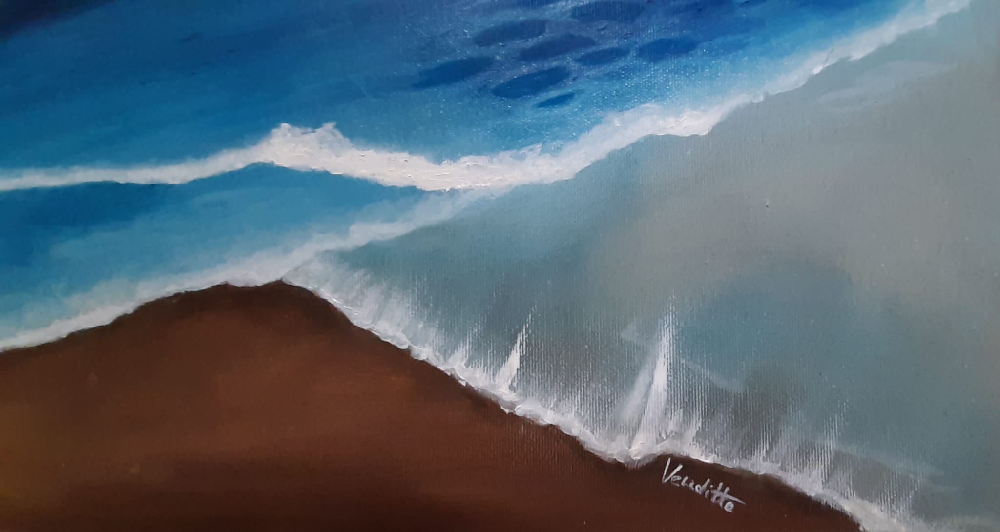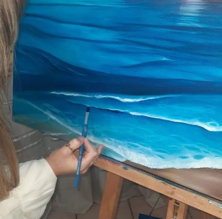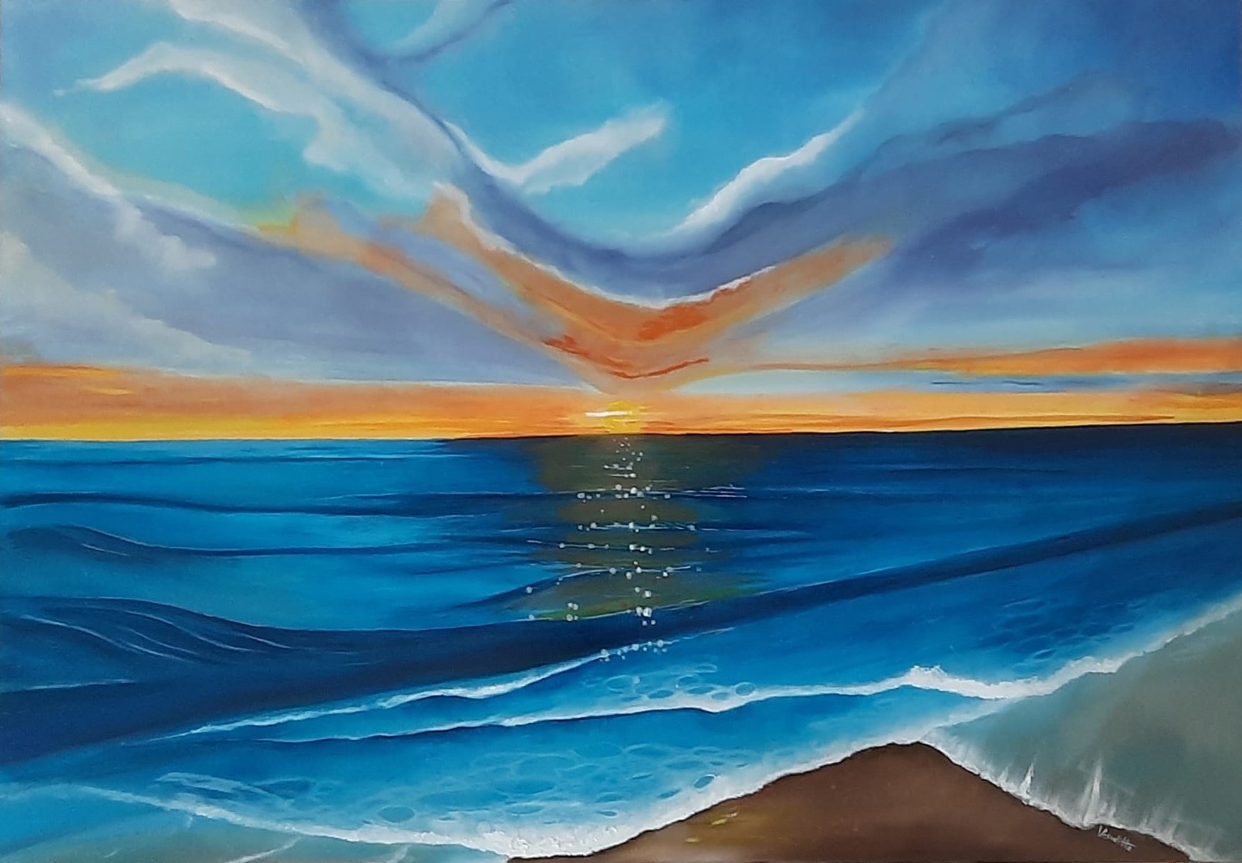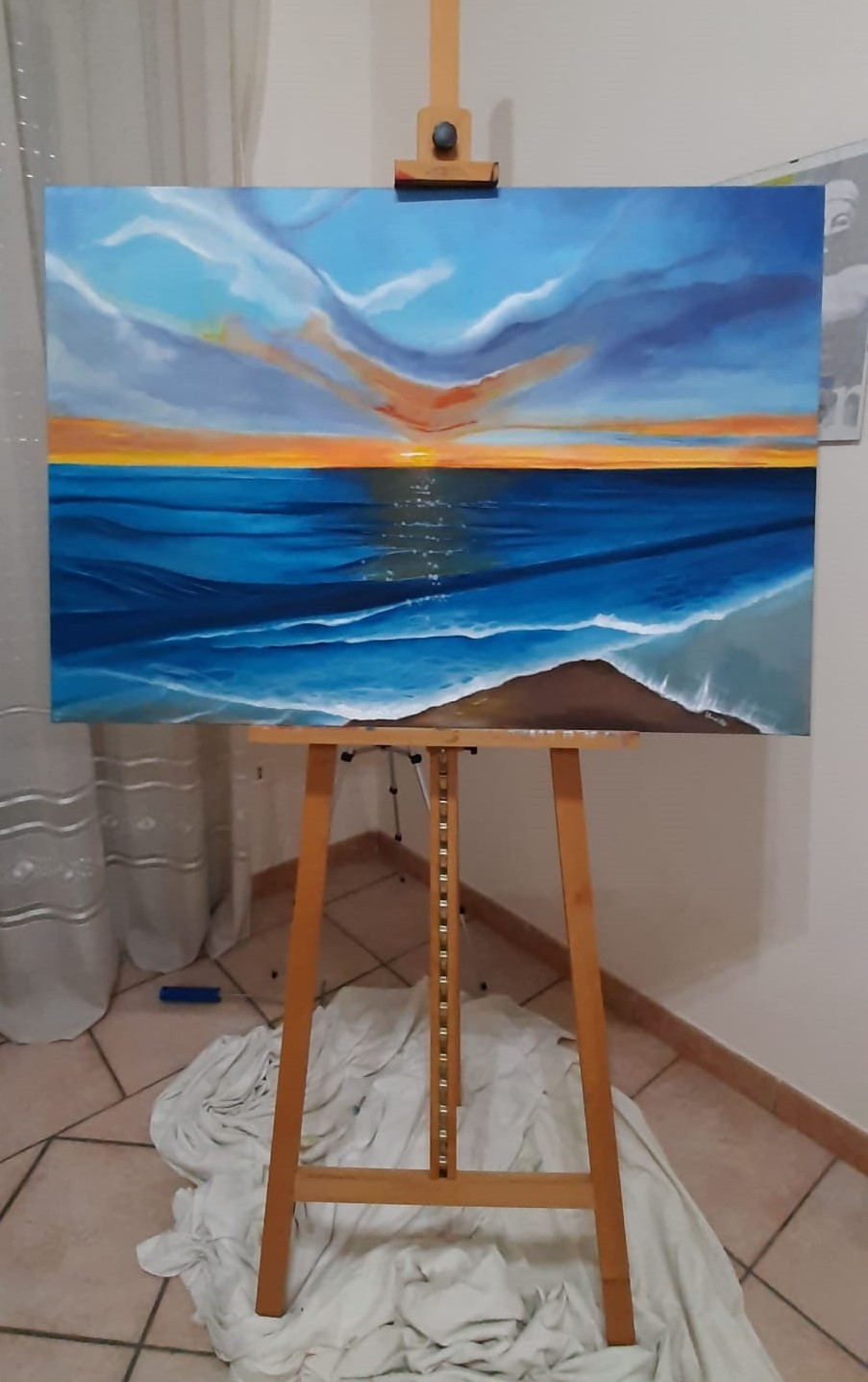 “The last sunset” nasce nel mio cuore e nella mia testa a Minorca, mentre mi godo l’ultimo tramonto prima della partenza per fare ritorno a casa. Prende, poi, vita nel mio studio riportandomi a quel momento di pace eterno e perfetto.